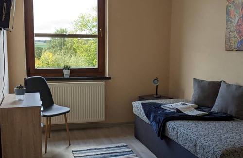 This beautiful, completely renovated and newly furnished flat in Stolpen is ideal for a holiday with family or friends. You can spend your time undisturbed in the lovingly tended garden. Garden furniture and a barbecue area are at your disposal. The view from all the windows is phenomenal. The castle town of Stolpen is a favourable starting point for the most beautiful destination regions of eastern Saxony with their beautiful hiking areas and ski regions. Saxon Switzerland, Upper Lusatia, the Ore Mountains and of course the baroque city of Dresden are fantastic excursion destinations in the region. You can cover your general needs in the supermarket 200 metres away or at the nearby bakery. In the neighbourhood, the restaurants within walking distance offer delicious regional food and drinks. The ancient Stolpen Castle is 200 metres away. The baroque city of Dresden is 25 km away. A bus stop for the regular bus to Dresden is 100 metres away. Stolpen train station is 800 metres away. Stolpen also has a small, idyllic outdoor swimming pool. The flat is located on the first floor with a well-equipped kitchen and comfortable bedrooms. There is also a car parking space in the courtyard. With Belvilla, an unforgettable holiday is guaranteed. We offer a wide range of unique holiday homes that will make your summer holiday, weekend getaway or skiing holiday extra special. Our range includes more than 40,000 holiday homes in 20 European countries. Whether you are looking for an authentic country house with pool in France, a charming house in Tuscany or a cosy chalet in the Alps - with us you will find the perfect accommodation for your family, as a couple or large group. Our holiday homes are located in beautiful places, be it on the coast, high in the mountains or in the middle of the city. Each house is unique and reflects the regional characteristics. At Belvilla you enjoy absolute freedom and privacy. You can have breakfast in your pyjamas or talk undisturbed in the evening without having to worry about curfew. In your own holiday home you can prepare delicious meals with local ingredients or take a relaxing break at any time. You stay among locals and experience the authentic atmosphere of the region first hand. Our homeowners or managers are discreetly available on site and will be happy to give you valuable insider tips about the area. At Belvilla, we are constantly on the lookout for new homes and destinations that meet the wishes of our guests. Book your holiday today and we will ensure an unforgettable stay in one of our unique holiday homes.