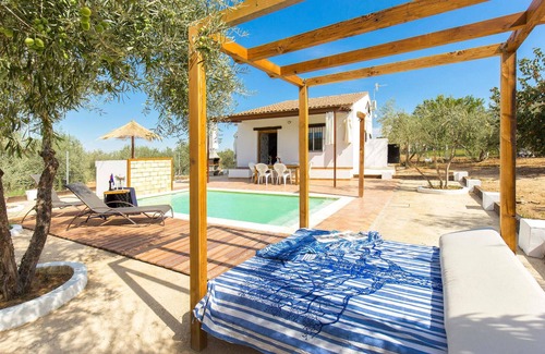 Beautiful detached holiday home with private pool for 8 people in an urbanisation of El Arahal near Seville.
