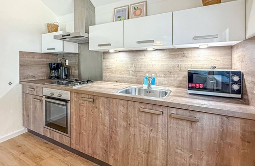 Be welcomed by the bright and tasteful furnishings. Relax on the cosy sofa, watch TV or read a book in the peaceful atmosphere of the living area. Take advantage of the open-plan design of the room, which creates a friendly ambience. Prepare your favourite dishes in the well-equipped eat-in kitchen and enjoy meals together at the large dining table.