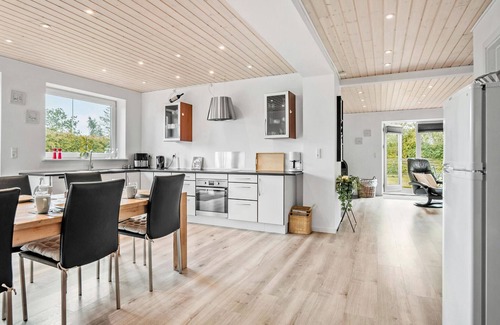 This holiday home is just a few minutes' walk from the child-friendly beach at Vejlby Fed and is surrounded by green, peaceful surroundings. Make yourself comfortable in the light-flooded house in the spacious, modern living rooms. The cosy living area with wood-burning stove invites you to spend relaxing hours reading, playing games or watching TV. Make use of the open-plan kitchen with high-quality equipment and dining area for shared meals.