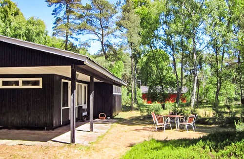 Traditional wooden holiday home on beautiful nature plot, only 300 m from a nice sandy beach and 1,7 km from Dueodde golf course.