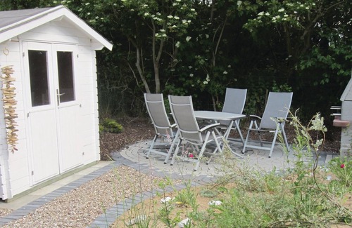 This terrace borders directly on the forest. Here you can have breakfast or sunbathe undisturbed while listening to the birdsong. A garden shed offers space for your bicycles or fishing tackle, as the Süssau beach offers excellent fishing opportunities.