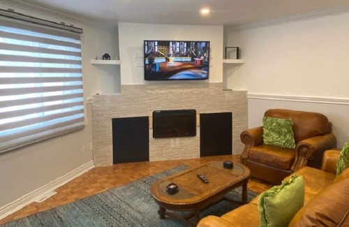 Confortable living room with electric fireplace and smart TV. Air conditioning all around the house.