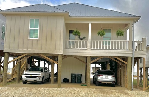 Come enjoy the Sights and Sounds of Mobile Bay from this Wonderfully Decorated and Super Comfortable Bay home. This house will meet all of your family's needs, with 3 ways to enjoy the outdoors: screened in porch - where you will find comfy swivel-rockers perfect for enjoying the idyllic Alabama sunsets or head downstairs and relax around the fire glass table and watch the game or layout on the conveniently provided lounge chairs and catch some "rays"; or utilize your own private pier and dock to head out on the paddle board, or try your hand at throwing out the bait net or set the crab trap and catch tonight's dinner!