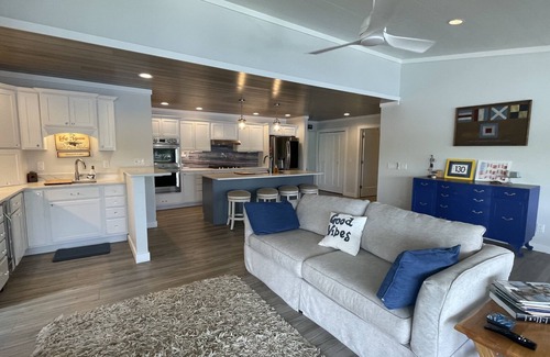 Home provides a pier for fishing and swimming off the pier for stays before Labor Day (or after Memorial Day in 2025). Boats not allowed to bring without previous approval by home owner. Please also note the home has one full bathroom and two additional 1/2 bathrooms. While we don’t allow pets through VRBO, the owners have a dog. If you have a pet allergy let us know in advance. There are also outdoor security cameras, i.e. Ring doorbell. There is parking that fits three cars.