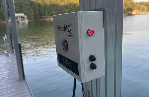 The dock has lights and power. Table and chairs and multiple lawn chairs. It's the largest size dock that the lake allows and has deep water all around it. 2 boats can safely be tied up to the dock. (No access available to our boat and waverunner)