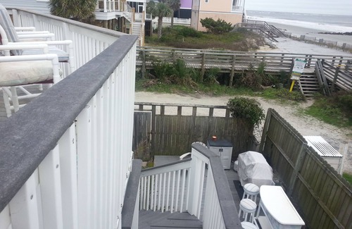 A well-maintained Ocean-front home with floor to ceiling glassed living area. Open floor plan allows maximum ocean views. Three spacious bedrooms and 2-1/2 baths can accommodate a family or group. The house can accommodate 10 people, but a new regulation on Folly is limiting occupants to 8. Although the ocean view from some rooms has been partially obscured by a house built on an adjacent lot in front, there are still plenty of gorgeous ocean views for guests to enjoy from the multiple decks (see pictures), and access to the beach is just steps away, directly off the home’s ground-level deck. All amenities one expects for a first-class, relaxing beach vacation are provided, including wireless internet and streaming. You will find a TV in the main living area and in every bedroom, a Jacuzzi tub in the master bath and much more. An outside shower with hot and cold water at the lower level helps you wash off the sea and sand. There is a dining area and a well-equipped kitchen for those who prefer to "cook at home". There is a charcoal grill provided on the lower deck for outside grilling (bring charcoal of your choice). The property is available for small weddings, receptions and other events (up to a max of 25 people) for an additional fee. Home is non-smoking, Butt buckets available on outside deck. Please empty upon leaving!