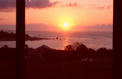 Four Winds' is a beautiful cedar-shingled house on a private road on high ground that gradually slopes down a grassy field to a secluded cove and Rhode Island Sound. The front of the house faces the ocean with fenced in yard in rear. All rooms have a view of the water. The living room has a large picture window facing the water and a wood burning fireplace. The large eat-in kitchen is fully equipped including a dishwasher and also has a big picture window facing the water. The grass patio is enclosed by a stone wall and provides a beautiful view of the water as well as cool summer breezes and is an excellent place for evening drinks. A master bedroom with private bath is on the first floor with another large bedroom and two smaller ones located upstairs.