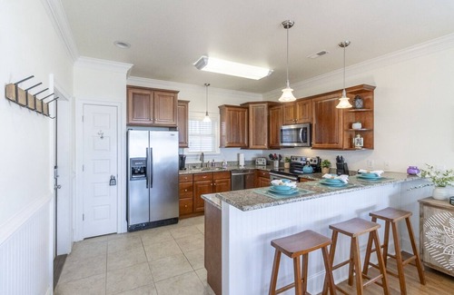 This gorgeous first-floor unit is the perfect getaway spot for couples or small families. The beautifully decorated living area invites you to enjoy your favorite movie or gaze at the rolling waves. The dining area is the perfect place for catching up after a long day at the beach. The well-equipped kitchen will delight any chef and every coffee lover can enjoy their choice with a Keurig. There are plenty of places to lay your head at night, including the king en suite with a private bath and a queen bedroom.