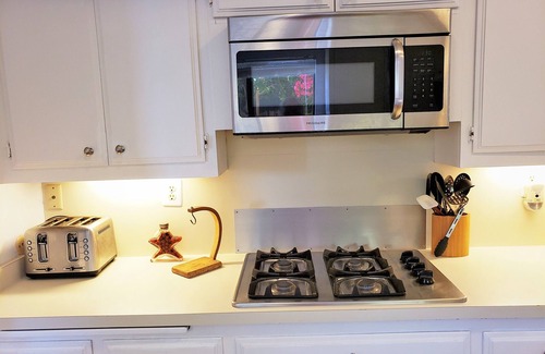 The living room offers a huge inviting fireplace, to view & savor the sounds and sights before you; the waves, surfers, dolphins, cruise ships,fishing boats and all of the marine life as it flows before your eyes. Take long relaxing barefoot walks on the beach, or take a short stroll/jog to the local boutiques or restaurants. Boogie board, surf or just read a book as you relax and sunbathe! Watch (and record) your favorite tv shows on the big screen over the fireplace. For the kids, we have added Disney Plus to keep them busy while you BBQ Grill on your patio overlooking the ocean front.