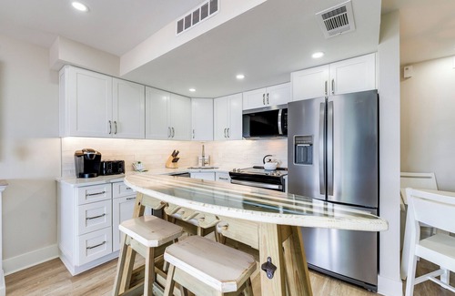 Newly Renovated UNIT 4B4: Let's go surfin' now and hang ten in this amazing top floor one-bedroom condo. Where else can you find a custom surfboard that doubles as a kitchen island - Kowabunga dude!