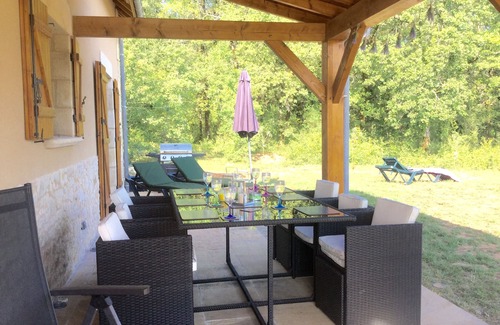 The house is set in its own private grounds with beautiful views across the Vezere valley to the south and Les Farges to the north. Ample parking space is available at the back of the house.