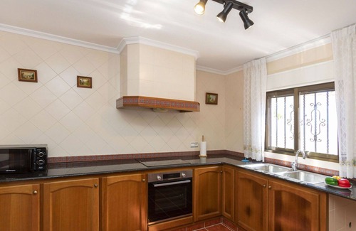 This vacation property is well-equipped with various amenities to enhance your stay. Enjoy the convenience of a washing machine, iron, and hair dryer. Outdoor entertainment is made easy with a terrace, patio, terrace furniture, and a barbecue area. Stay connected with complimentary Wi-Fi internet access throughout the property. Parking is available in the garage, which can accommodate up to two cars. Pets are welcome, with a maximum of three allowed on the premises. Please note that the TV only receives Spanish channels.