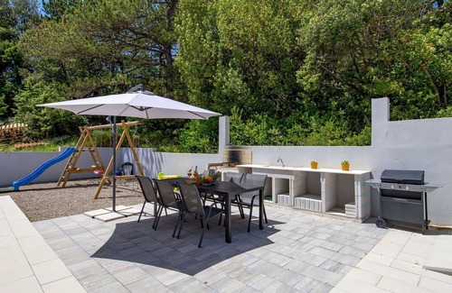 The villa boasts an impressive outdoor area spanning 700 m2, complete with a heated swimming pool (32 m2, depth of 140 cm) available seasonally from March 15 to November 15. Guests can enjoy an outdoor shower, patio, barbecue area, and the pool is maintained by the owner or gardener.
