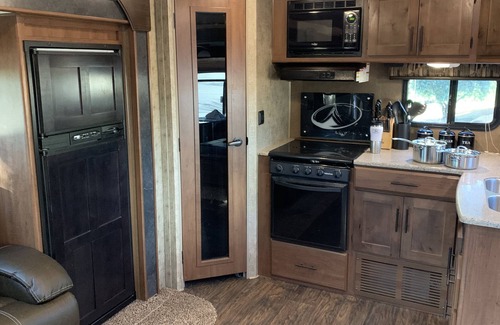It’s pretty amazing. People love it. Fenced 5 acres, pet friendly. We have horses, dogs, cats and chickens. Bring your horses, tons of trails.