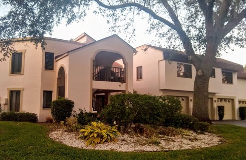 We call this The Villa at Summer Green because you enter this private end condo through your own elegant gate at the front door. This two-bedroom, two bath second floor end unit is in the up-scale, meticulously cared-for Summer Green community. The layout features an open, split floor plan with two large bedrooms, each with its own en-suite bath. Each bedroom has large walk-in closets. Since it is an end unit, each bedroom has windows on two walls instead of just one providing much more natural light than most. The main living area features numerous windows, beautiful wood flooring with tile in the kitchen and carpet in each of the bedrooms. The large living room/dining room has elegant French doors that open onto an enclosed tiled lanai (this lanai is unique because it not only has a screen but sliding glass doors so you can enjoy it in any weather). The kitchen has an updated ceiling with elegant back-lighting and crown molding and is easily navigated with a pass thru to accommodate the dining area (that we also use as a breakfast counter with bar stools). It also features a filtration system for drinking water. Adjacent to the kitchen is a large laundry room with a washer/dryer and a tank-less water heater for efficient, yet endless hot water. The Villa is beautifully furnished, the kitchen has everything you would need, and the condo has a dedicated one car garage. There is a 50" TV that sits on an electric fireplace that can be used just for ambiance, or heat. The unit has cable with premium channels, and high-speed WiFi. Summer Green offers Mediterranean style architecture in a park like setting with: numerous ponds, 2 heated swimming pools - each with a clubhouse, bathrooms, grill, and a bar (perfect for entertaining!), a newly re-surfaced tennis (and pickleball) court, community recreation room with fitness equipment, walking trails, and it is also a short walk to the Capri Isles Golf Club (a public Golf Club with a great clubhouse/restaurant/bar- no membership required). Historic downtown Venice with shopping, restaurants, outdoor concerts, and beautiful Venice Beach are just a short drive (or bike ride) away. 4 bicycles are included. You will love the privacy, the endless activities, and attractions in paradise.