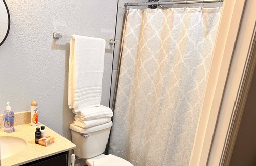 Be sure to check out the kitchen, stocked with a coffee maker, a microwave, and cookware. Connect to the free WiFi, or get cozy in front of the Smart TV. Bathroom amenities include towels, toilet paper, and soap. Other amenities at this 1-bedroom, 1-bathroom rental include bed sheets, air conditioning, and a dining table.