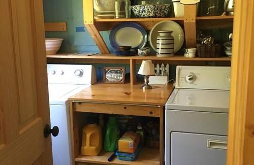 One indoor full bathroom, one full outdoor bathroom (in season)!