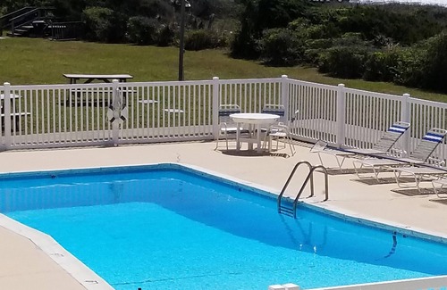 This studio condo is one of the very best Ocean Sands Condominiums has to offer and is beautifully decorated with excellent craftsmanship and with the comfort of its guests in mind. Ocean Sands is an ocean front complex which offers 600 feet of beautiful sandy beaches on the Crystal Coast and our unit offers a small view of the ocean from our east side windows. This unit is not direct ocean front but just a few steps from the ocean!. You will only need to bring your personal items as this unit has everything you need for an enjoyable vacation. Ocean Sands is a family centered facility with grills, gazebos and plenty of grassy areas for the kids to bring outdoor games to enjoy during your stay. The facility has a nice salt water pool and also offers a coin op washer and dryer in the community building. You are only a short distance from numerous mouthwatering restaurants and gift shopping areas, both in Atlantic Beach and nearby Morehead City. While vacationing at Ocean Sands, you must tour the Fort Macon State Park, the NC Aquarium and the Morehead City and Beaufort waterfronts, all of which are only a short drive away. There are businesses on the island that have bike and kayak rentals and there is a nearby family park that includes a splash pad for the kiddies, skateboarding, picnic areas and a putt-putt golf course is available for your entertainment and exercise too!