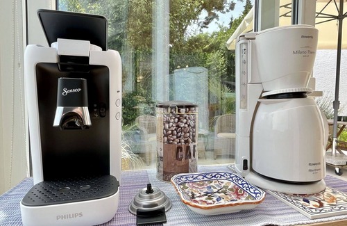 The property features a large balcony with a south-facing position, a large terrace with south and west-facing positions, terrace furniture, balcony furniture, an electric barbecue (portable), and deck chairs (2). It offers a marvelous view of the lake. Amenities include a washing machine, dryer, hair dryer, and free WiFi internet. Reserved parking is available at the house.