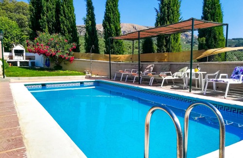 Comfortable villa. This beautiful villa in the countryside has a spectacular view of the surrounding mountains and a large enclosed swimming pool. In its own grounds with olive and fruit trees. The house is very private and is only 5 minutes from the town of Montefrio. It consists of 6 bedrooms, 2 full bathrooms, a large dining room and a kitchen. Barbecue, swimming pool with garden furniture and a beautiful view of the mountains. The pets are allowed.