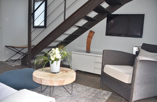 In a family house of the 50s renovated in 2017 on the edge of a calm alley duplex room with living room and bathroom on the ground floor and sleeping on mezzanine.