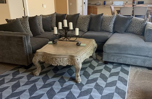 The home has open concept kitchen, 2 living area and dining tables for a total of 10 dining seats, TV's in every room, 3 car garage (direct access) and private driveway for 3 additional cars. High Speed Wifi and Roku (free channels) and streaming available on all TVs. Self Check In.