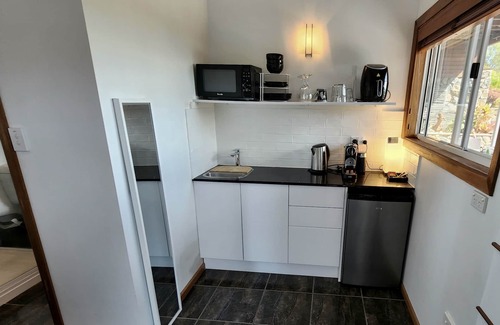 Kitchenette, microwave, electric fry pan, toaster, all cooking utensils, Bar fridge, Weber BBQ. car space property is not fenced.
