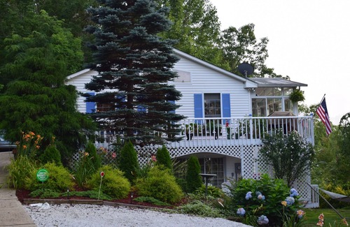 Virus update At our property all surfaces and Linens are sanitized with Bleach and hot water after every stay for your safety for a nominal fee. also a Tesla 50 amp charger Picture yourself sitting on the glassed/screened in porch at sunset, overlooking the Smoky Mountains, sipping a glass of complimentary wine. It does not get much better than this summer, winter, spring and fall. Our three bedroom two bath country cottage has all the modern conveniences and the charms of the country. If you are a couple looking to get away from it all or a multi generational family having a holiday get together, Bella Vista is right for you! The main floor has an open plan great room with a fully stocked large kitchen for preparing great meals for family and friends. In the summer spring and fall you will find pots filled with fresh herbs that are there for the picking...even tomatoes too! We have a lovely dining area with an antique farmers table and a large comfy living room with a gas fireplace and satellite TV,(although the view from the windows and the the glassed in porch with four rocking chairs off the living area provide great scenic beauty)...there are two bedrooms on the main floor with Queen beds, master bedroom has a bathroom with shower and tub. Lower floor has a bedroom with twin beds and a game room/satellite TV set up... gas heater, Ping Pong table and Pool table with plenty of room for the family. We have stocked the house with books, games, puzzles and DVDs for those nights you just want to stay in. There are three decks off the house, all with panoramic views; upstairs has a wood and charcoal burning grill and downstairs is a gas grill, fire pit and comfortable Adirondack chairs for sitting and enjoying the view and the fresh air. There is a side lawn with fruit bearing trees if you are lucky enough to be there in season. We installed a brand new washer and dryer when we renovated in 2013 and the house is fully air conditioned in the summer (although you will want to throw the windows open for the crisp cool summer evenings) and furnace for the winter. This is a four seasons rental, we are set up comfortably for 6 people although we could sleep 8 ..all linens, toiletries, dishes, pots and pans and other essentials are provided...the cupboards are filled with spices, oils, vinegars, mustards and other mainstays to start you on your cooking experience. We have thrown great dinner parties and barbecues for friends and family.
