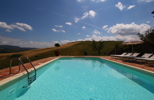 This 1-bedroom farmhouse in Castel del Piano can house 2 people and offers sweeping views of the surroundings. Ideal for a couple, it features a shared swimming pool and a shared garden for a delightful holiday experience.