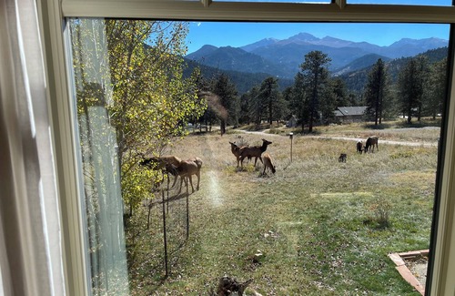 3) This is one of the best locations in the entire area. You are about as close to the main entrance of Rocky Mountain National Park (Beaver Meadows Entrance) as you can get. Pop in and out of the National Park quickly and easily. It's also just a short 2.5 miles drive to the shops, boutiques, and galleries of downtown Estes Park. Due to its proximity to the National Park, lots of wildlife passes through the area. My husband and I stay at the house periodically and we have seen deer, elk, bears, bobcats, turkeys, hawks, humming birds, eagles, marmots, and coyotes.