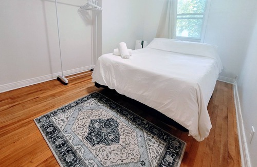 This cozy 2 bedroom apartment is conveniently located just a 5-minute walk away from metro Frontenac. Its serene and tranquil surroundings ensure a peaceful night's sleep.