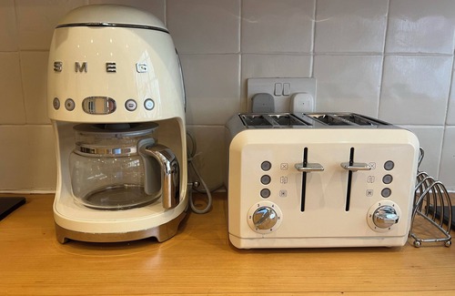 Amenities: Gas central heating. Electric oven, gas hob, microwave, fridge, freezer, dishwasher, washing machine, coffee maker. TV. High speed WiFi with good coverage throughout the cottage. Fuel, power, and starter pack for woodburning stove inc. in rent. Bed linen and towels inc. in rent. Travel cot and optional mattress available. Short-term parking opposite cottage and free parking up side-road, or nearby public car parks available. One well-behaved dog welcome. Sorry, no smoking inside the property. Shop 0.3 miles, pub 0.1 mile. Note: The stairs have a handrail. Note: The washing machine and freezer are located in the basement utility; the steps down are steep, please take care. Note: There is no garden. Note: The property rests on a main road so there may be some associated road noise heard. Note: This property has a Good Housekeeping Bond of £350