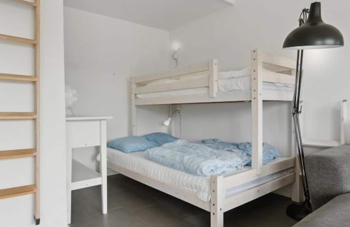 "Birla" - all inclusive - 400m from the sea in NW Jutland", 2-room apartment 65 m2. Object suitable for 4 adults. Living room with 1 double sofabed and TV. Open gallery, 1 room with 2 beds and 2 sleeping facilities. Kitchen (oven, 2 ceramic glass hob hotplates, microwave). Shower/WC. Facilities: washing machine, children's high chair, baby cot. Internet (WiFi). Reserved parking at the house. Please note: non-smokers only.