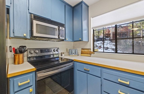 Welcome to Black Cedar Retreat, a modern mountain getaway nestled in the trees of Mi-Wuk Village. Step into the open-concept living space featuring a wood-burning stove, oversized sectional, and a bright, welcoming layout. The fully equipped kitchen includes a drip coffee maker, toaster, condiments, and all the cookware you’ll need to dine in with ease. A washer and dryer are available for your convenience.