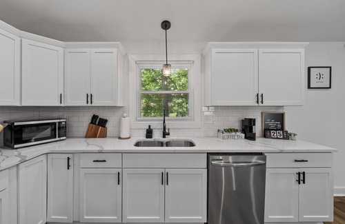 Step inside this beautifully designed 4-bedroom, 2.5-bath retreat—your perfect home away from home. With a spacious open-concept layout, this home is ideal for both relaxation and entertaining. The stylish living area offers cozy seating, while the large dining table is perfect for group meals. The modern kitchen features marble countertops, bar seating, and everything you need to enjoy your stay. Outside, you'll find a private, enclosed backyard with a fire pit—perfect for peaceful evenings under the stars. Whether you're roasting s'mores or unwinding after a day of adventure, this space adds a special touch to your getaway.