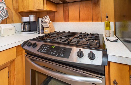 Cutlery for 8, sets of kid plates, bowls and cutlery, serve ware for 8, bakeware, wine glasses, coffee mugs, gas stove, cast iron skillets, pots and pans, crock pot, blender, toaster, electric mixer, muffin tins, mixing bowls, serving dishes, Keurig coffee maker dual maker with pot and Kcups, pizza pan, cookie sheets, Brita water pitcher, quality knife block set, cutting boards, cookbooks.