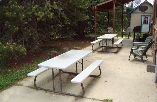 * Gas BBQ grill & 2 picnic tables