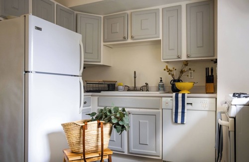 This home is a converted annex building that has been made into a comfortable cottage. While it does not have central air conditioning, portable AC units and fans are provided to keep the space cool. The home has its own private space but shares a driveway with a few other residences on the 5-acre property, including the owner’s. You may see others using the drive, but the house itself is separate and offers a peaceful, private stay.