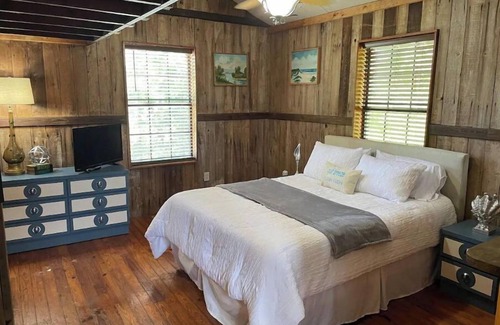 ~ Escape & unwind with the salty air in our little getaway! Relax & forget about it all. This home was built by our family in the eighties. Most of the living space is reclaimed wood. It is a private secondary walk-up unit. The unit is an open concept loft with a queen bed, twin sleep chair & full sleeper sofa. Pack-n-Play, high chair and baby bath tub are onsite for guest use. There is a public boat ramp 0.2 miles away. It takes about 20-30 minutes to get to Pensacola Beach or Navarre Beach. Multiple local eateries within five miles. We love this area because of all nature has to offer here from hikes, beautiful places to bike ride, bird watching, snorkeling, scuba diving, museums, rivers, creeks & the whitest beaches!