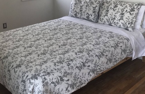 Our preferred style is clean and modern and we love to cook-- we built the kitchen to be cooked in and designed the rest of the house to feel light and spare. Whether you dine outside on the deck or indoors in the modern kitchen, windows on three sides bring you sunshine and beautiful views, and in the morning you can enjoy your coffee sitting on one of two private decks off the upstairs bedrooms. Three bedrooms have Queen beds and one bedroom has two twins. The Master bedroom has its own bathroom with jacuzzi tub. There is wifi, central air, washer and dryer and BBQ gas grill.