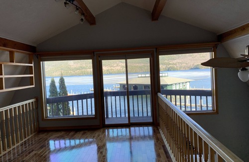 Enjoy the stunning views of crystal-clear Lake George and mountains in Northwest Bay.. The wrap around deck overlooks a small but private beach. This rustic 3 bedroom house sleeps 8 with 3 bedrooms a master with a king, queen and 2 bunk beds and a loft . Internet/cable is included for the 65" TV in the family room, 32" TV in the master and queen rooms.. This newly renovated home is decorated in an Adirondack theme with a 15 foot cathedral ceiling. Home includes a propane grill, patio table and Adirondack chairs and a outdoor fireplace. There are two new kayaks and paddle boards(and PDF's) for your enjoyment on the lake.