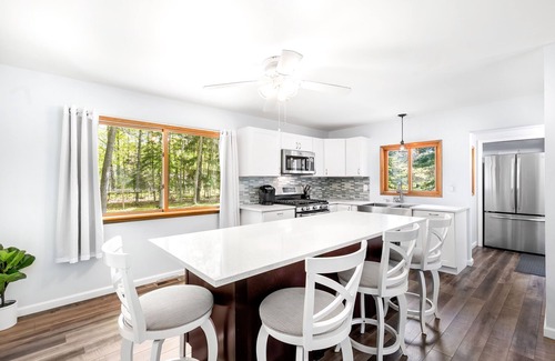 This cottage is nestled on a fully wooded, half acre lot making it a perfect place for summer night bbq's and bonfires. House offers plenty of parking for your boat/trailer/toys and is 5 mins from South State Park, Marl Lake, Dollar General (for any last minute shopping needs) and the famous Nibbles Ice Cream. Property is within walking distance to Redwood Golf Course and Markey Township Park. Newly remodeled with a fully equipped kitchen, Wi-Fi, and a large screen flat TV for movie night.