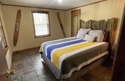 At Clean Slate you will enjoy beautiful peaceful clear water and a fantastic view of Smith Lake from every room in the house. Clean Slate was built in 1975 and remodeled in 2012 to include natural slate throughout the house, all new appliances in the kitchen, and handmade unique furnishings. Relax in the den or simply step outside onto a patio that leads directly to a covered boat house 20 steps away. Located on a smooth deep quiet creek, it is a wake boarder, surfer, skier or fisherman's dream. There are four bedrooms, two have queen beds, one a full, and one has two twin beds. A living room upstairs can easily accommodate a blowup bed(not included). The kitchen/open living room combination has a table that seats six. Watercraft lovers will be pleased to know that Clear Creek boat ramp is only 3 miles away and Duncan Bridge Marina is 15 minutes by water. PLEASE NOTE Smith Lake water levels vary throughout the year; contact us for more information. The pictures where taken early in the year and the video was taken between late September and early October. We do NOT advertise that there is a beach!