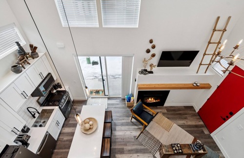 DETAILS: This brand new home has an open floor plan with 1000+ sqft of living space with all the comforts of home. The property comes with an inviting living room with a large flat-screen TV, fireplace, and cozy seating. The open kitchen has stainless steel appliances and stunning quartz countertops with stools for additional seating. It is equipped with all the pots, pans, dishes, and utensils you will need to prepare a meal!
