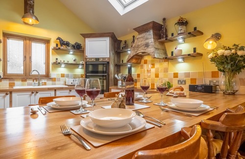 Upon entering, the delightful nature of the property comes to the fore as the unique touches of character and excellent facilities optimise the enjoyment of your holiday. Enjoying views of the enclosed courtyard garden, the comfortable sitting room is a quiet, cosy and private space, allowing you to sit back and relax. Leading to the open-plan kitchen, this area is perfect for rustling up a delicious meal made from all the fantastic local produce you discover. A commodious breakfast island with sit up bar stools provides seating for four, creating a sociable environment.