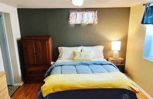 This fully furnished studio basement unit is the perfect place to escape from the hustle and bustle of daily life. The unit has a comfortable queen-sized bed, and a nice living room area providing plenty of space for you to spread out and relax. The fully stocked kitchen ensures you can whip up meals quickly and efficiently, or you can order take-out and enjoy it in the serenity of the fenced-in backyard. Unwind from the day with a favorite book or TV show in the comfort of your very own space away from home. Perfect for travelers and business professionals alike.