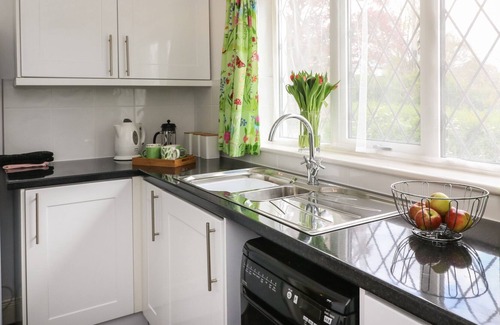 Amenities: Electric central heating. Electric oven and hob, microwave, fridge/freezer, dishwasher. TV with Freeview and WiFi. Fuel and power inc. in rent. Bed linen and towels inc. in rent. Off-road parking for one car. Enclosed lawn garden with table and chairs. Two pets welcome; £25 charge for second pet. Sorry, no smoking. Shop 0.4 miles, pub 0.2 miles