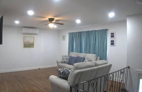 Forget your worries in this spacious and serene space. Nice large rooms with split units, large enclosed backyard with parking for 4 cars. Great for outdoor fun and 30 mins from MacArthur Airport. This House has lots of rooms for Groups or friends traveling together or large families getting together for Long Island Carnival, Cricket or family reunions.