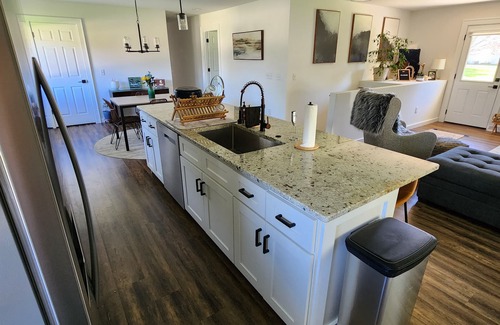 Welcome to the Dead End Dreamhouse—a peaceful, modern retreat built in 2023. Located at the end of a quiet street, this clean, bright home features 3 bedrooms, 2 full baths, and a spacious backyard—perfect for kids to play and grown-ups to unwind. Take a 10-minute walk to the public beach or stroll downtown for a bite to eat. Back at the house, enjoy evenings under the stars and fall asleep to the sound of frogs in the woods. Whether you're here to relax or reconnect, you'll feel right at home.